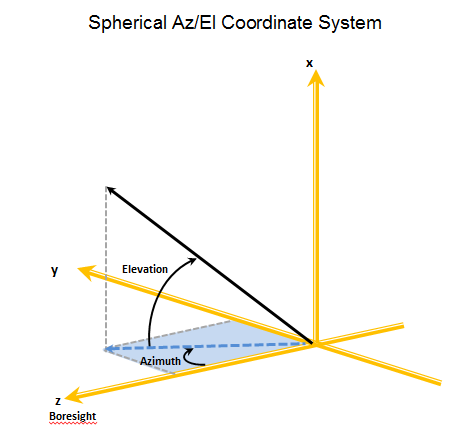 Each system is defined by two angles, azimuth and elevation, that are measured relative to the antenna body axes.