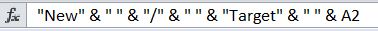 - Copy and paste or type the following text string to cell B8: "New" & " " & "/" & " " & "Target" & " " & A2