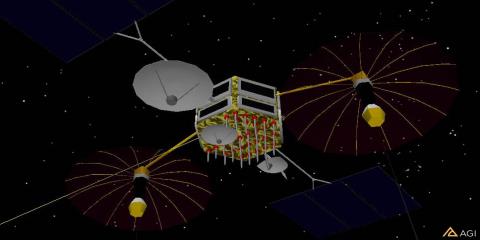 - Mouse around in the 3D Graphics window to get a better view of the satellite antennas.