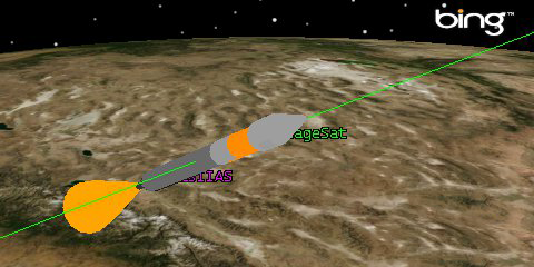 The Vandenberg AFB launch pad was imported from the STK Standard Object Database. If you bring the 3D Graphics window to the front. The shadow on the ground in the Bing Maps being used is the shadow of the actual launch tower at Vandenberg. In addition to the positioning being technically accurate, the scenario also uses a 3D model of the real Atlas launch pad (atlas-lp.mdl) that was provided as part of the STK install. Pretty cool!