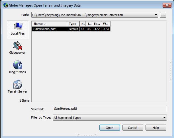 - Select the *.pdtt file (e.g. SaintHelens.pdtt) from the Path drop-down list.