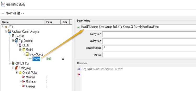 The first study you will perform varies power to determine which value is best. You need to select input and output variables from the main Analyzer window to pass to the Parametric Study tool.