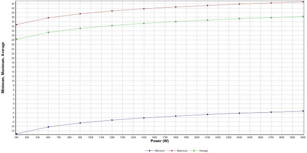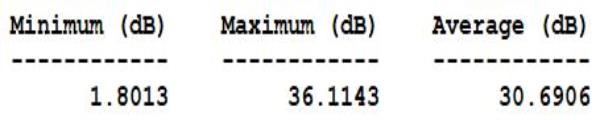The optimizer was able to drive power to its lower bound of 300 W while at the same time attaining the goal of between 0 and 10 dB of coverage for all grid points.