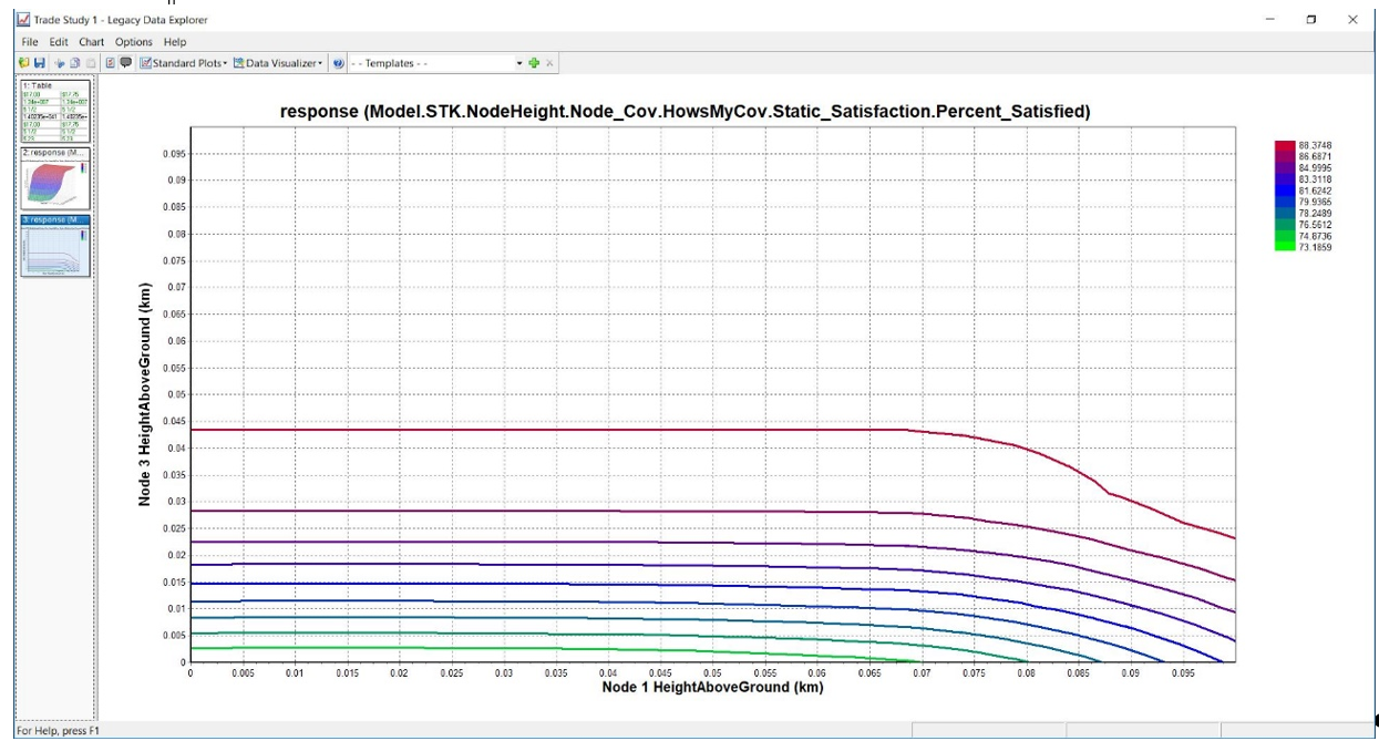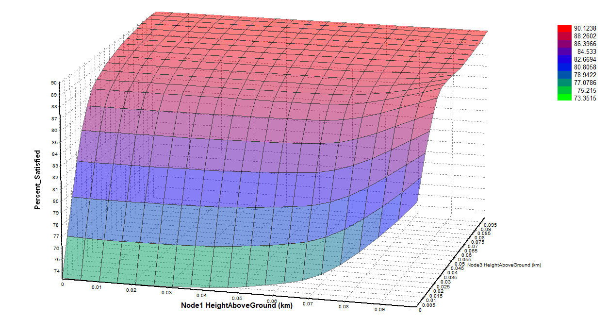The Carpet Plot gives a valuable way to visually analyze the impact of two variables on coverage capabilities. However, we would still like to see the impact of varying the height of all of the nodes. The Design of Experiments tool will allow us to do this.