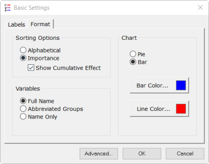 - The labels include only HeightAboveGround and not the name of the Node. Click Chart on the menu bar, and select Basic Settings. Go to the Format tab, and select Full Name under Variables, as shown below. Click OK to confirm the settings.