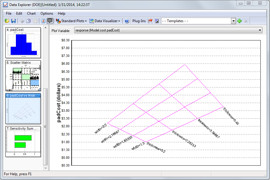 The Carpet Plot is a plot which displays data dependent on two variables in a format that makes interpretation easier than normal multiple curve plots.