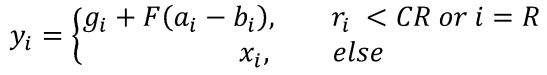 The algorithm starts by randomly generating a swarm of size np. Trial points for next generation are generated by a combination of the known best design, current design, and other designs. Pick a random integer value R between 1 and the dimension of the search space (n). The next trial point is determined by using the following formula.