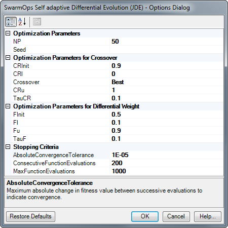 Note: SwarmOps algorithms are being removed and may not be compatible with future releases of Analyzer. Users should be cautious when using them in models
