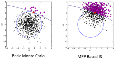 Figure 1. Comparison of basic Monte Carlo and MPP-based Importance Sampling.