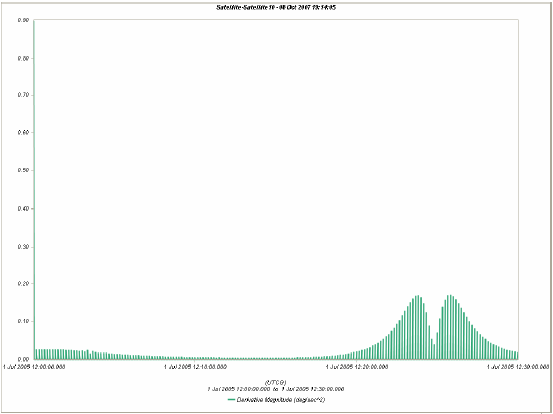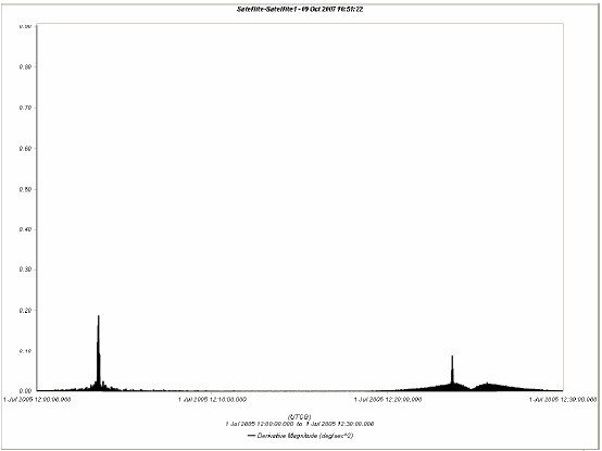 The following figure shows angular acceleration in J2000 using 1-second samples and second-order attitude interpolation.