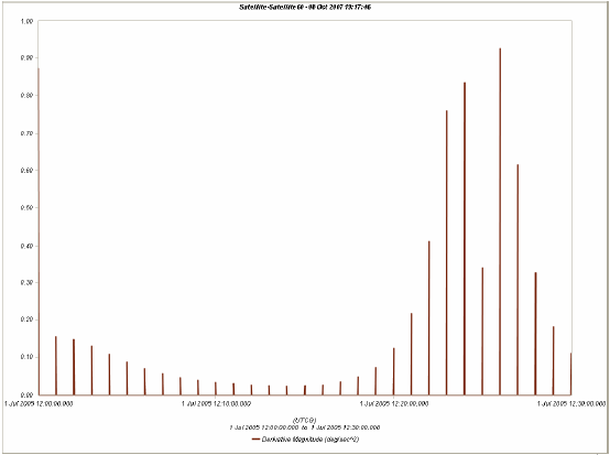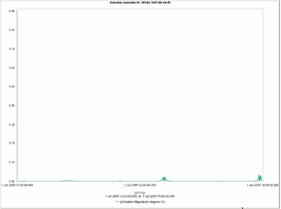 The following figure shows angular acceleration in J2000 using 60-second samples and first-order attitude interpolation.