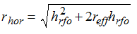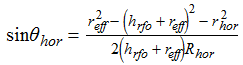 For the line-of-sight constraint, the refracted range to the horizon rhor is calculated via trigonometry of right triangles: