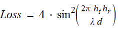 You can approximate the total propagation loss, free space and two ray destructive signal loss, by the well known "fourth-power law" model. The portion describing the two ray destructive signal loss is computed according to the following equation: