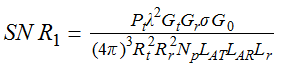 Bw = receiver bandwidth, which is1/Tint for continuous wave (CW) radar, whereTint = integration time, and1/τ for fixed PRF radar, whereτ = pulse width