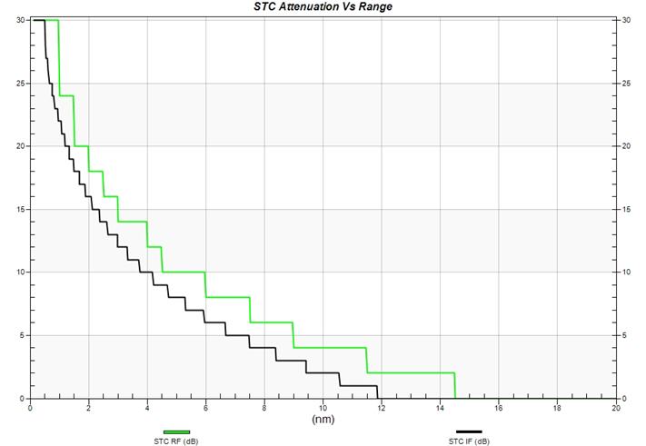| Stop Range | Range at which STC is cut off; the STC attenuation value may decay to zero (dB) before the stop range depending on the decay factor or the decay slope values |