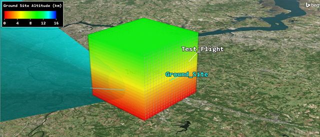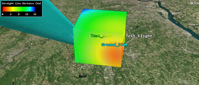 Use STK and the Analysis WorkbenchSpatial Analysis tool to create calculations and conditions that depend on locations in a user-defined 3D grid. Combine the spatial calculations and volume grids in the Volumetric object to report calculations over time and across grid points. Then, visually depict the volume representing various values interpolated across the grid points.