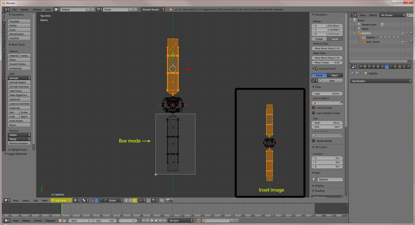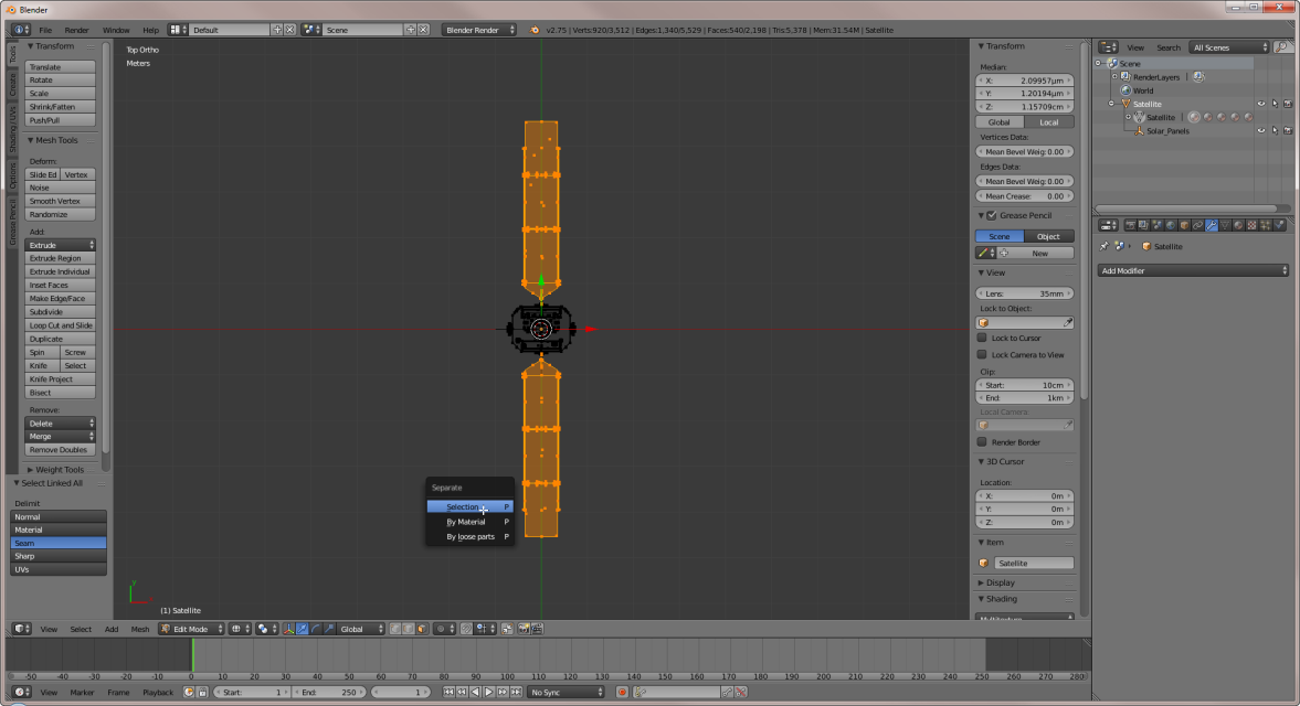 Let's separate the solar arrays from the body of our present model. The entire model should still be selected.