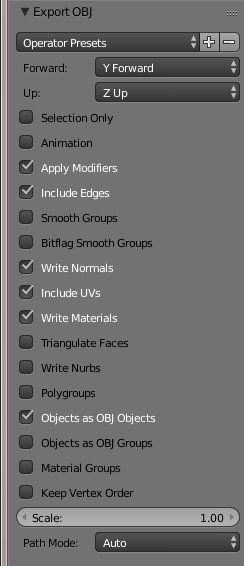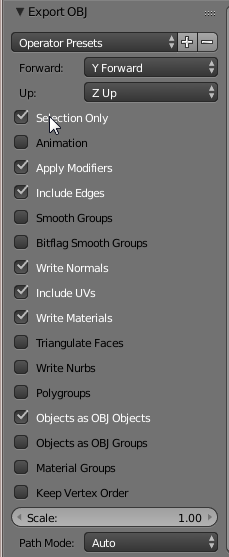 - Select the File_Export_Wavefront (.obj) menu and select the Selection Only option.