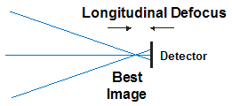 | Longitudinal Defocus | You can blur the image by displacing the point of perfect focus off of the pixels by this linear distance, in mm. The default is 0.0 mm. This does not apply for Input as Custom PSF and Custom OTF/MTF. See the diagram below for a pictorial definition of this property. |