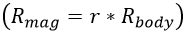 . Other choices of the departure angle result in alternate departure positions on the circle of radius Rmag in the