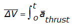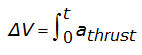 The Inertial Delta-V calculation objects represent the magnitude and the x, y, and z components of an inertial Delta-V vector. The vector for this calculation object is the integral of the thrust acceleration vector, expressed in the inertial frame of the propagator's central body:
