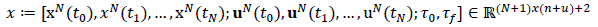 Collecting the nodal values of the states and the controls and the initial/final time into a single decision variable vector: