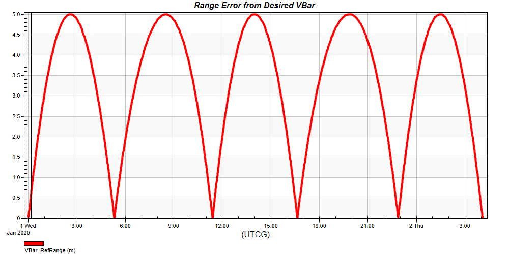 With Maintain VBar, you can specify the duration to maintain the VBar and the maximum error from the desired VBar. From those inputs, this sequence computes all required Delta-Vs to stay within that maximum error from the ideal VBar.