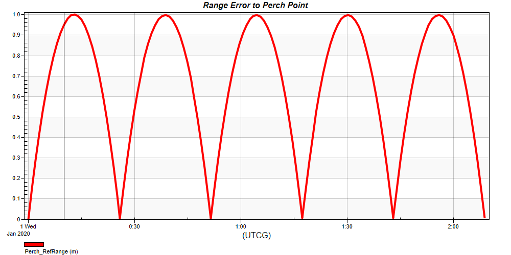 The Perch Maximum Error RPO sequence maintains a perch point using the maximum error method. This sequence uses forced-motion waypoints to maintain the current relative position. This relative position, when not on the VBar, requires station-keeping maneuvers to remain there.