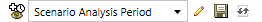 Use the Timeline View to visualize time intervals and time components within your scenario. You can adjust the display and content by using the toolbar, adjusting the three timeline displays, and adding rows of time components.