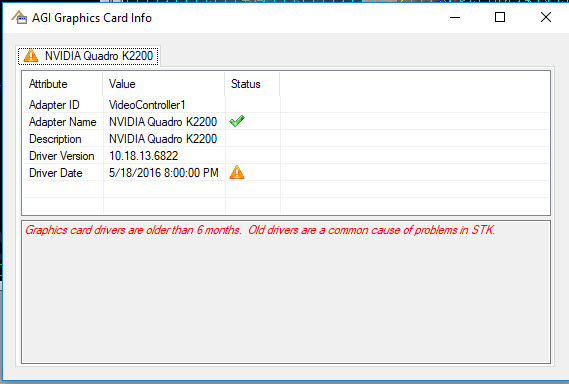 AGI recommends that, at a minimum, you update your graphics card drivers whenever you install a new version of STK.