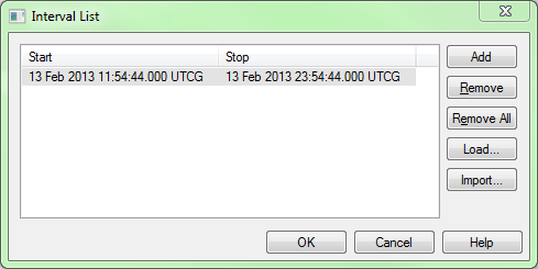 An Interval File has been created with all of the outages for that particular satellite for the scenario’s timespan. Click the Edit List … button to see the outage times.