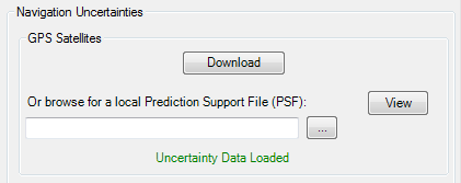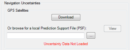 Once opened, you can select to use a Prediction Support File (PSF), which contain the GPS satellite errors, from either a web service (if you are connected to the internet) or from a file locally. Notice the red note indicating that data is not loaded initially.