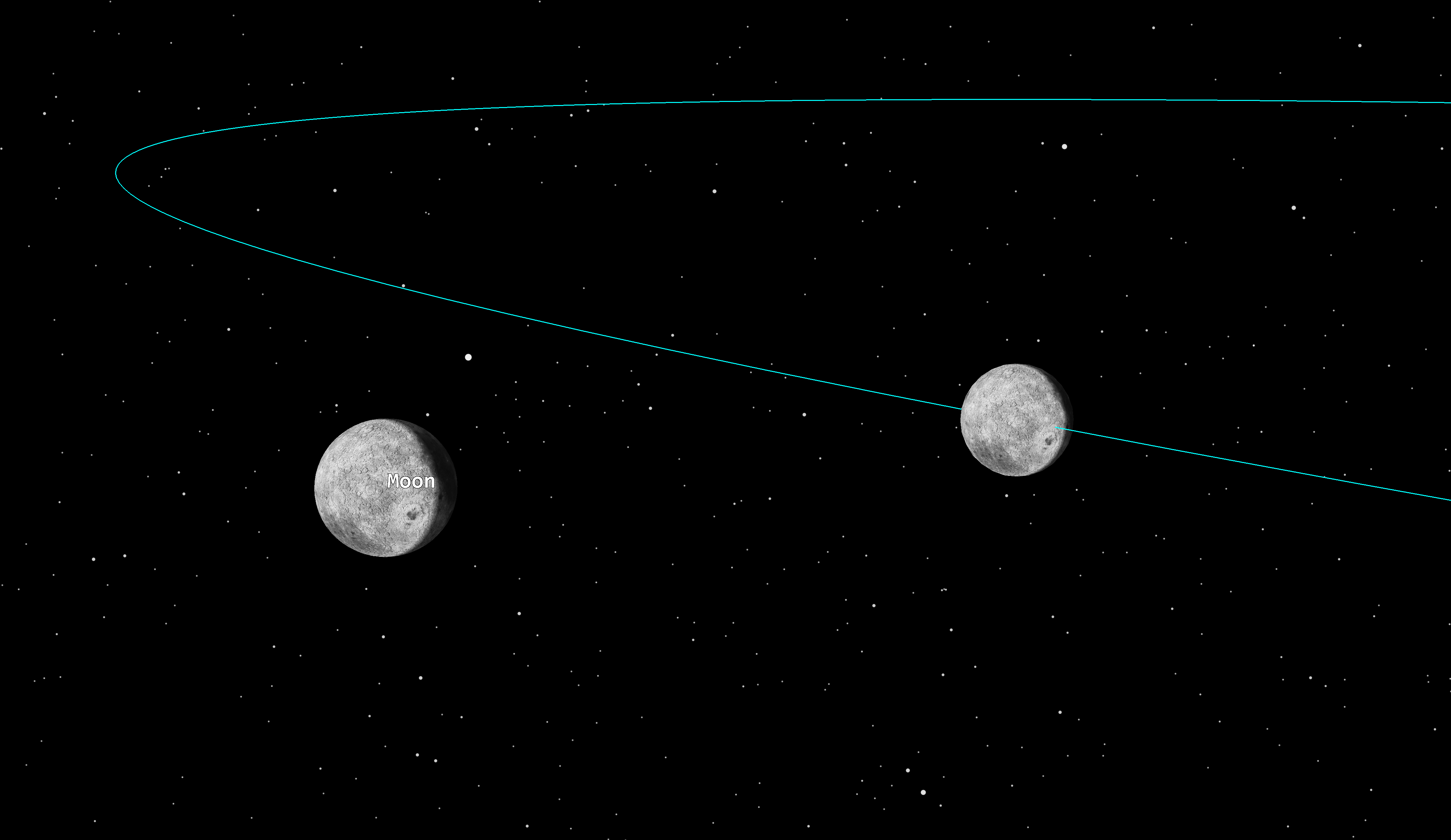 View your new secondary body in the 3D Graphics window by pulling the view around to observe its circular orbit. Note the location of the real Moon.
