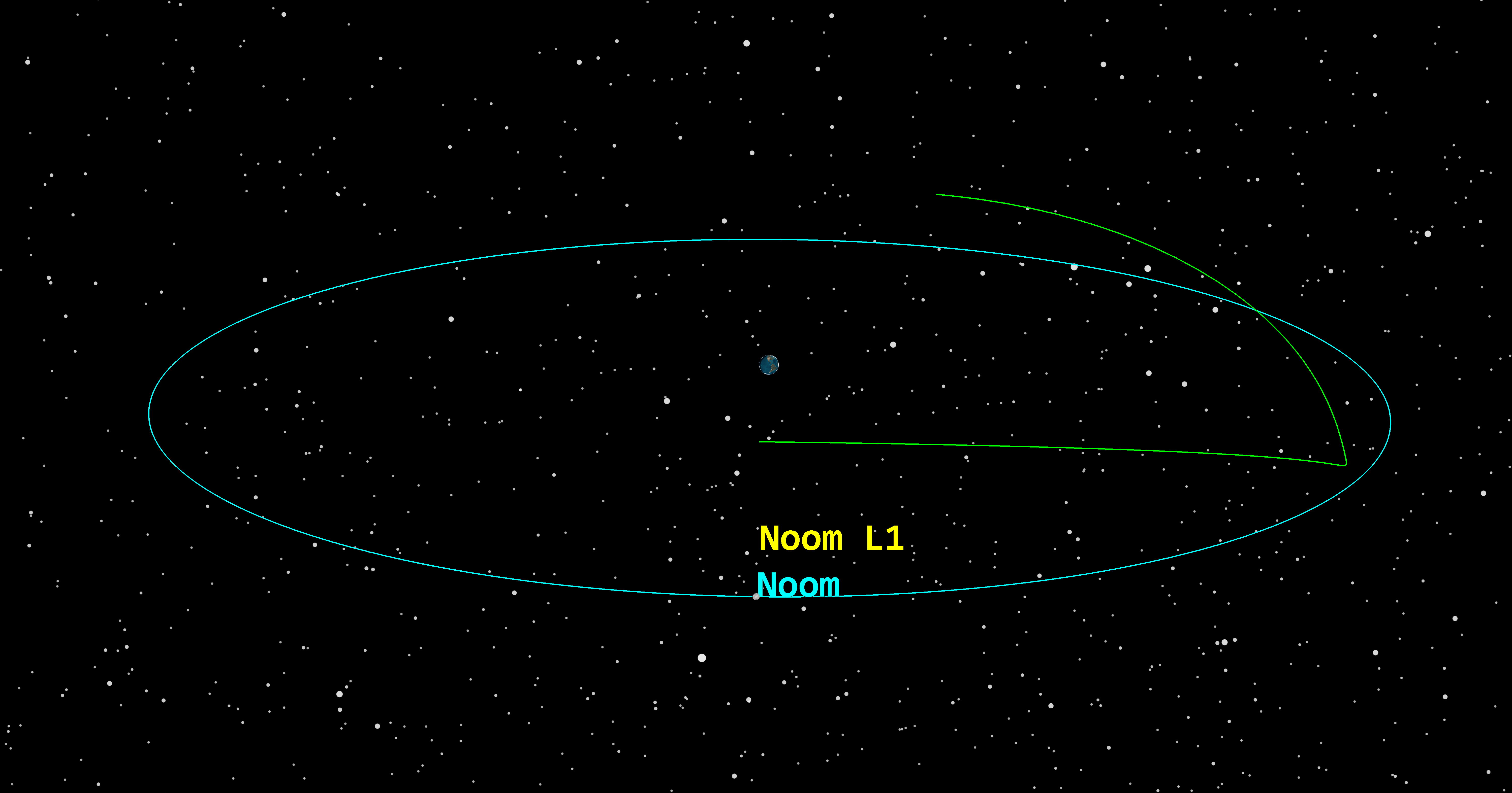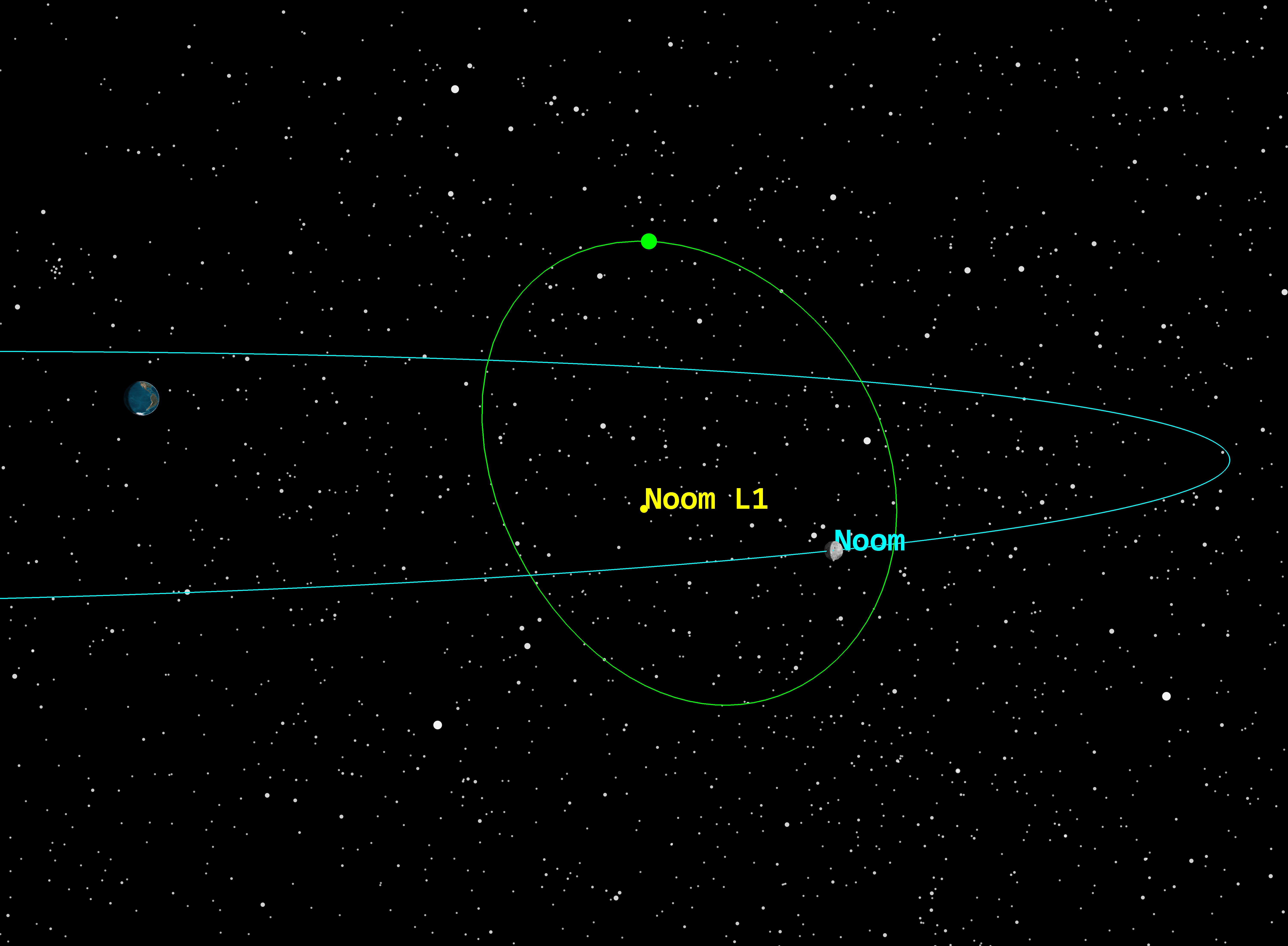 Earth-Noom L1 halo orbit, inertial view