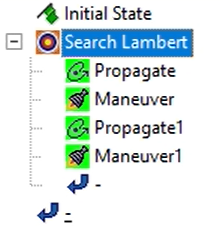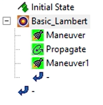 A basic Lambert sequence has two maneuver segments and a propagate segment between them. You will start the target sequence with a maneuver.