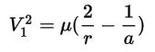 V1 is the velocity of the transfer orbit at the end of the transfer (from the Vis-Viva Equation):