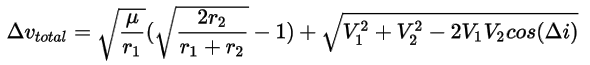 Merging all those pieces, we find the equation for total Delta-V to be: