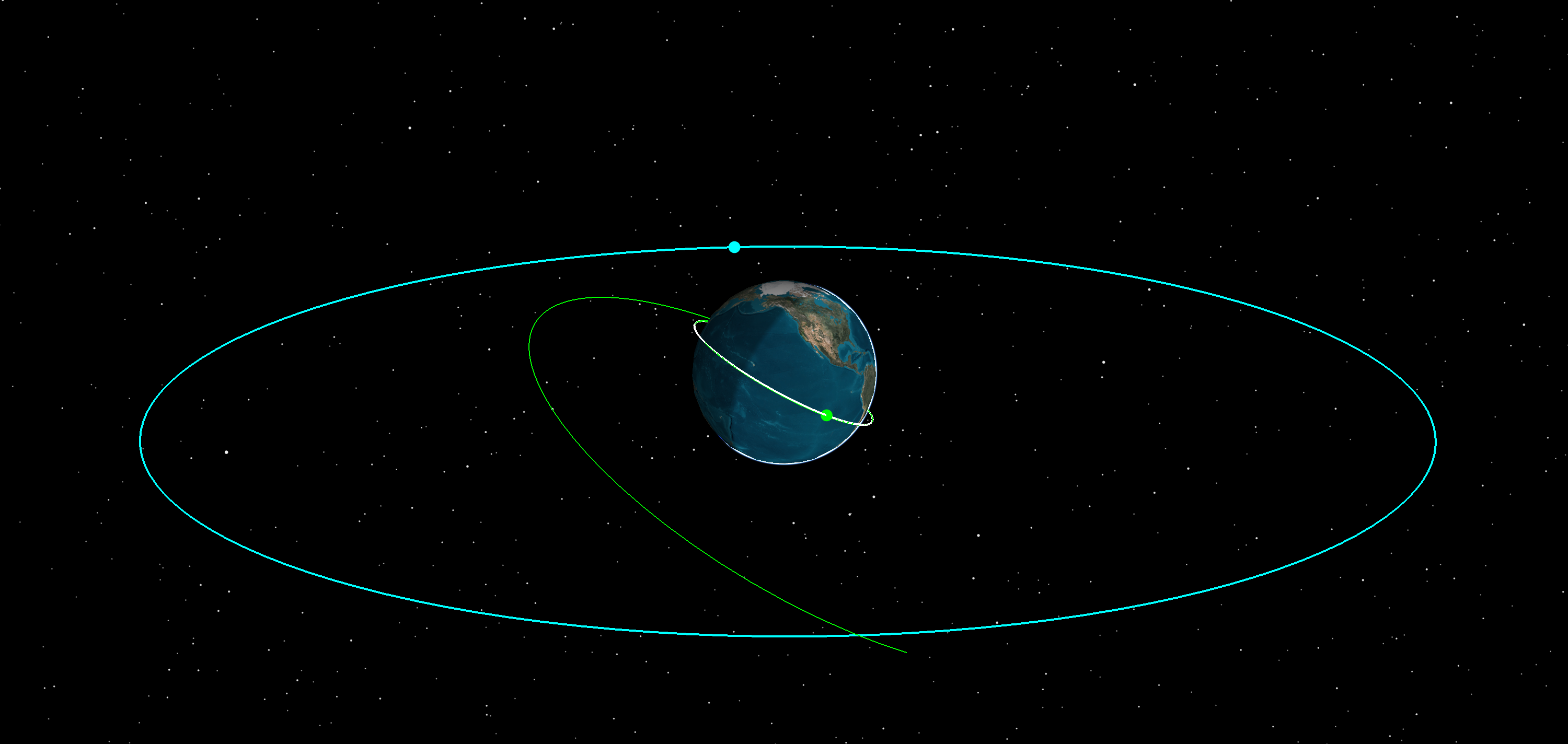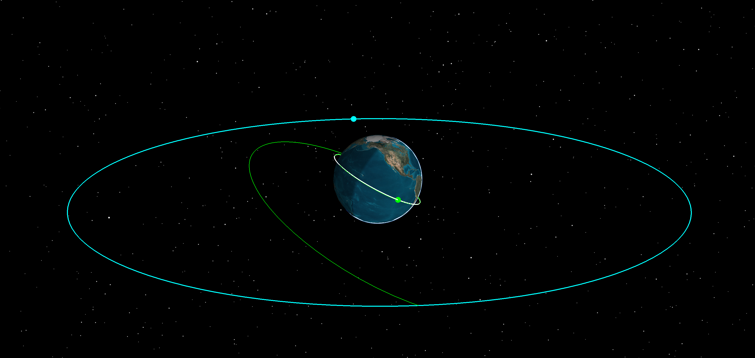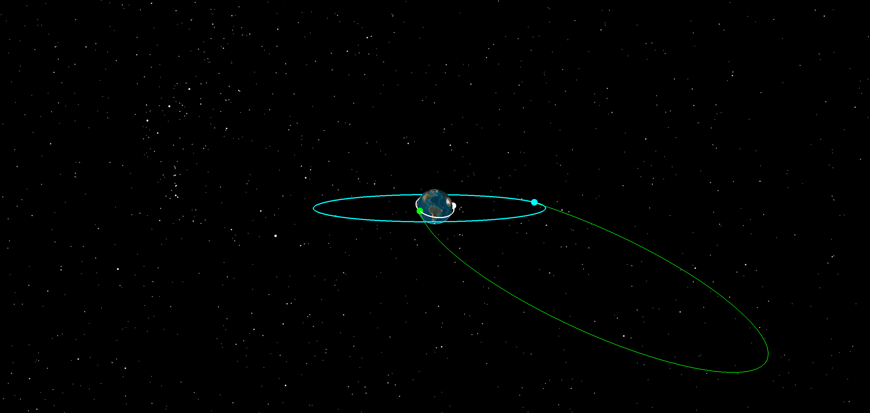 After the first maneuver, the TransferBasic satellite is in an intermediate orbit. This next segment will have the satellite fly in that orbit for some time.