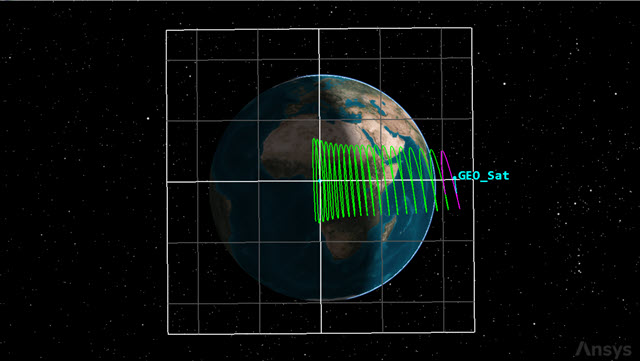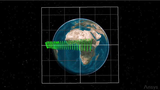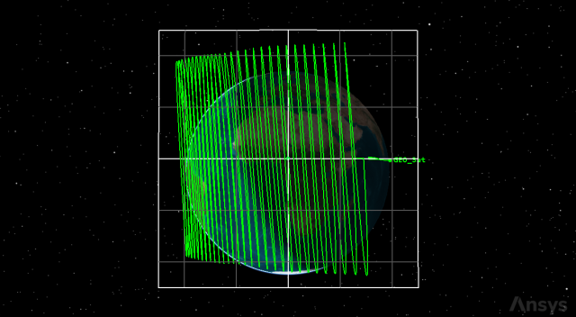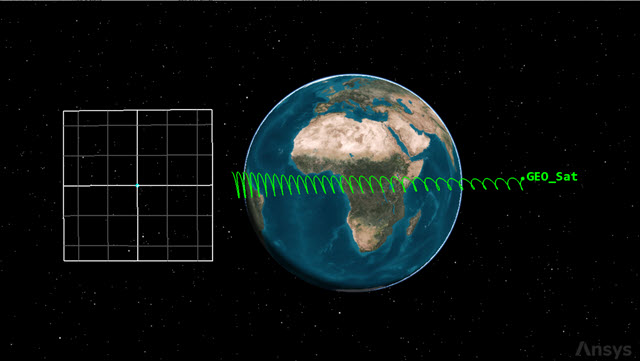 View GEO_Sat's orbit in the 3D graphics window to view the effects of the station-keeping maneuvers.