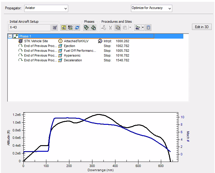 You have modeled the X-43 flight with a basic performance model and then compared that to a performance model derived from CFD using Aviator. With this tool, you can verify and validate their flights. Once the data is in STK, you can conduct post-flight analysis. With EOIR, you can model what their on-board systems see and how well they can detect an object traveling at Mach speeds.