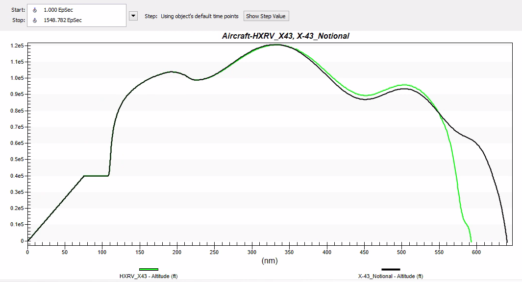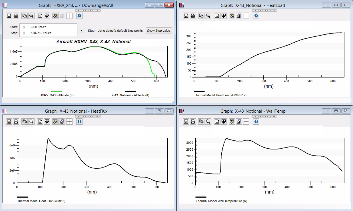 - Select various points on the display to get additional data. Note the Temperature when clicking on various points of the X-43.