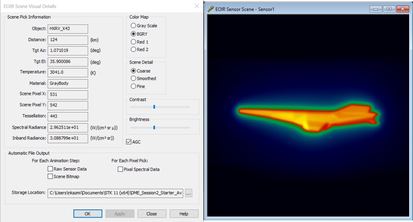 The sensor is now defined, and you can see the thermal model of the hypersonic vehicle. The EOIR configurations have already been designed for the HXLV_X43. This was modeled in the starter scenario.