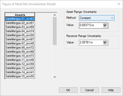 STK defaults the Asset and Receiver Range Uncertainties to one meter and zero meters.