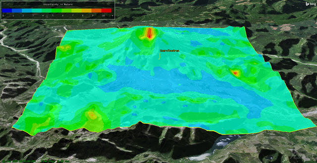 For the purposes of this exercise, any range uncertainty greater than 10 meters is unacceptable. You can use minimum and maximum uncertainty values to define the display of color contours.