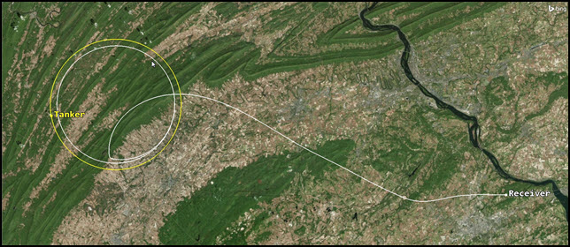 Use STK, STK's Aviator capability, the Aviator Formation Flyer, and the Aviator Pro capability's Rendezvous / Formation strategy to create a mission with which you can build and analyze a long distance airborne refueling mission.