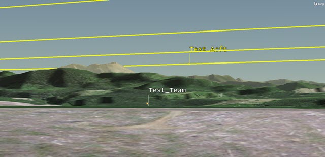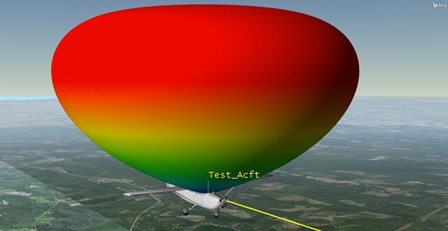 ) location in the 3D Graphics window. This is where the GPS jammer will be deployed. Look at its location compared to the Test_Acft's (