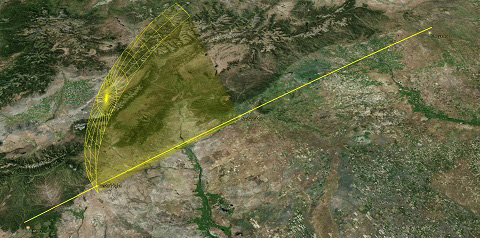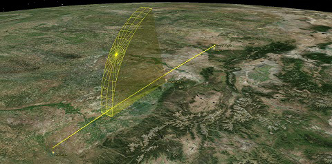 Often, the dome created by a Sensor object is used to model a field-of-view, or the overall volume of space in which radar looks. The radar itself often sweeps or scans through that field-of-view in a repeating cycle. The area of space represented by such a scanning or spinning radar at any given instant is its field-of-view. Add another level of fidelity to your scenario and build a sweeping radar beam using a moving Sensor object.