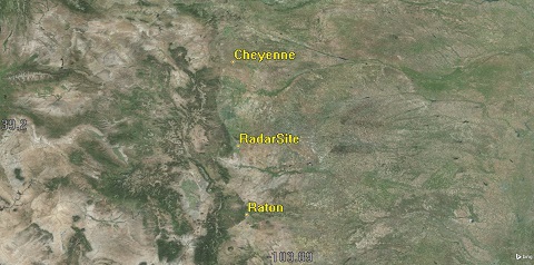 - Zoom in until you are centered on RadarSite with Cheyenne and Raton visible at the top and bottom of your map.