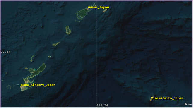 6. Due to the default turn radius, your waypoints won't be overhead of Amami or Minamidaito. You'll fix that shortly.