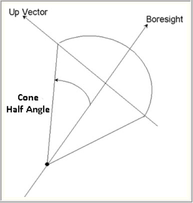 2. A Simple Conic sensor pattern (default type) is defined by a simple cone angle. In this case, it defaults to a cone half-angle of 45 degrees, which means you have a 90-degree field of view.